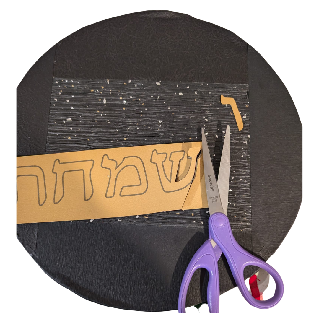 Print or draw the phrase ושמחת בחגיך on gold paper. Cut the letters out.
